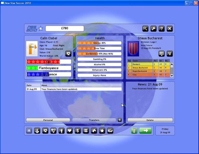 First things first: New Star Soccer 2010 is an indie game developed by the one-man-company New Star Games (Simon Read) that puts you in charge of your career as a professional football player (as in soccer for our friends across the ocean). Similar in concept with PES’ Be a legend or FIFA’s Be a pro, NSS2010 lets you create a football player, join your favorite club and try to become a world legend.