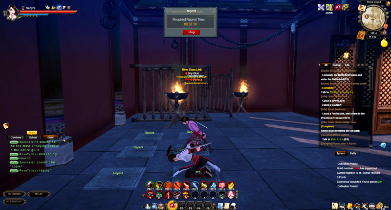 Age of Wushu works based on administrative divisions, first of all there’s the main society of Jianghu, everyone is a citizen of Jianghu and as in every organized civilization there are rules to be followed. This giant sector serves mainly to control and contain abusive behaviors, for example if a player decides to become a serial killer, there’s a possibility to place a bounty on the criminal, jail him or even execute him. But to become a master of Kung Fu, players need to choose one of the eight existent schools (Beggar’s Sect; Emei; Royal Guards; Scholars; Shaolin; Tangmen; Wudang; Wanderer’s Valley), each one with its own unique technique and abilities. The third sector is the school orientation, which can be good, neutral or evil. This may seem fairly meaningless but in game it has a huge impact, as evil schools have no disciplinary punishment for being merciless and ruthless towards non-school players. As for the good schools, they are not allowed to do any bad things, included walking walked around the world! As it used to happen in the Ming Dynasty, those who don’t follow the rules are severely punished by the grandmasters and repenting is the only option to redeem yourself from the committed sins.