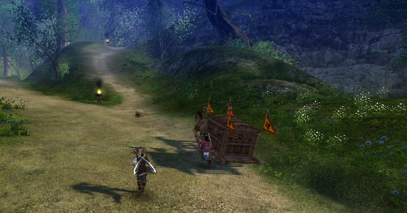 In order to gain guild income, guild represents must run caravans, transporting goods from towns to guild camps, however other guilds, specially the enemy ones will most likely attack and claim the goods for themselves. Group battles and small duels are very probable to happen during those two activities.