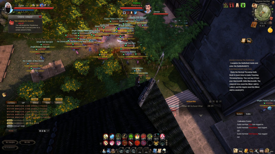 At Fridays and Sundays there’s a server event regarding schools, where players can choose which school they wish to attack or defend. Epic group battles are engaged during one full hour, there’s some PvE in the middle too, killing tons of NPCs and a few bosses, capturing flags. Gaining honor is done through doing all of those.