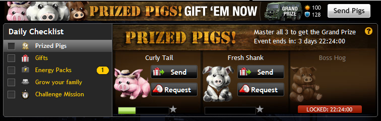 It was first announced that the Prized Pigs will be introduced in Mafia Wars this weekend but players were surprised to find them in the game as early as yesterday. For this event, players are required to collect three pigs to earn the grand prize. Also, as you master each pig, you’ll be awarded with an exclusive reward.