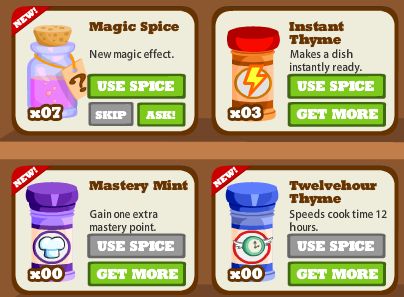 There are three new types of super spice available in Cafe World today, each with really nice effects: the Mastery Mint, Magic Spice and the Twelvehour Thyme. If you’re curious to find out more about these new super spices available in the game, read on!