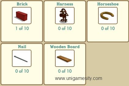 When you reach 25 items, you’ll receive pop-up that will allow you to post a feed to your wall. The first ten neighbors to click this feed will receive a random building component for their own Horse Stable construction.
