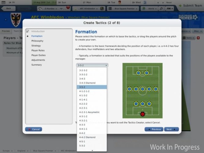 However, there are a few downsides with this tactic: it seems to offer less of a control on the elements that make it a whole: I wasn’t able to find the instruction to make my team play the offside trap, I found absolutely no way of telling my players how to hit the corner kicks – and these are some major turn offs. Compare the amazing set piece creator of CM2010 with the rudimentary and barely existent set piece instructions in FM2010 and you’ll know where SI should’ve invested more instead of creating a new interface.