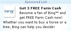 Get 3 Farm Cash for Becoming a Bing Fan via FarmVille