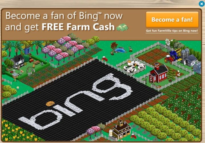Zynga has taken their money-making FarmVille social game to the next level by promoting Bing, Microsoft’s new search engine that wishes to battle head to head against Google. Fortunately, there’s something in for the FarmVille fans as well: 3 free farm cash to be won if you become a Bing fan via FarmVille.