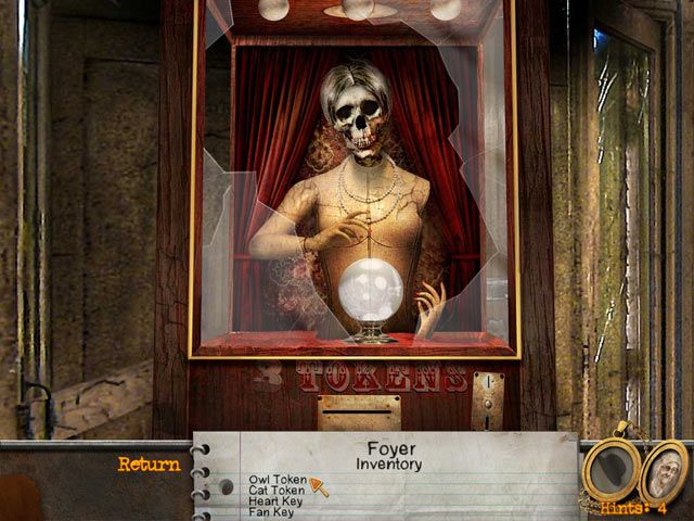 The game’s description tells us that the action takes place in the sleepy village of Old Haven where game’s heroine Becky Brogan finds herself in the Meane Manor following a school experiment. A foul mist wafts around the dilapidated house, an old fortune teller box sits abandoned in the foyer, and eerie journal pages from the past take Becky on a Hidden Object mystery hunt. Collect clues and pieces of the past as you help Becky get closer and closer to solving The Mystery of Meane Manor!