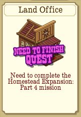 “First of all, you need to complete the fourth quest in the Homestead Expansion series, and only then the Land Office will become available for purchase.