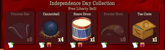 Once you’ve luckily completed the Independence Day Collection, turn it in to get a Liberty Bell. The bell acts like a dinner bell and will summon your family members when you click on it.