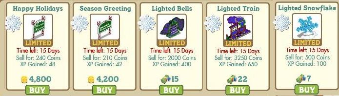 – a Happy Holidays sign, costing 4,800 coins (48 XP)