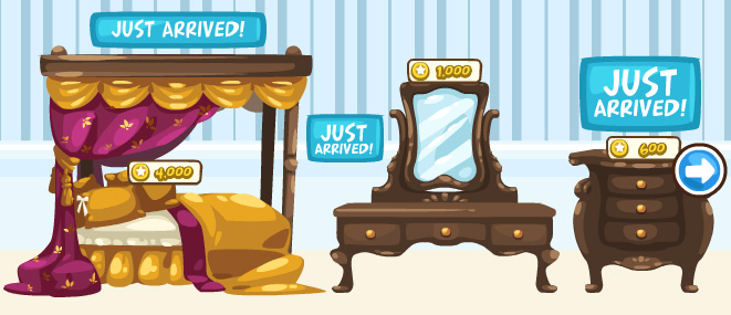 Items from Sleeping Beauty are available from the Furniture Shop. Her fairy godmothers have given her gifts, which are Book of Wit, Lyre of Musical Talent, and the Mirror of Beauty. According to the fairy tale, the wicked fairy cursed the princess that she will prick her finger on the spindle of a spinning wheel and die. You can also get a Wooden Spindle from the Furniture Shop.