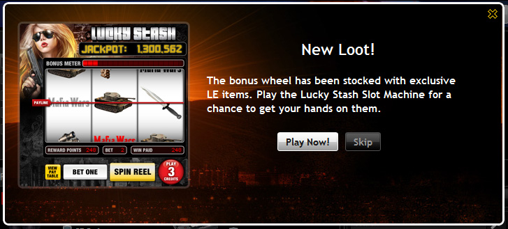 When you log into Mafia Wars today, you’ll be greeted with an announcement that new loots are added to the bonus wheel in the Lucky Stash mini-game. These are exclusive limited edition items you can only get by spinning the bonus wheel.