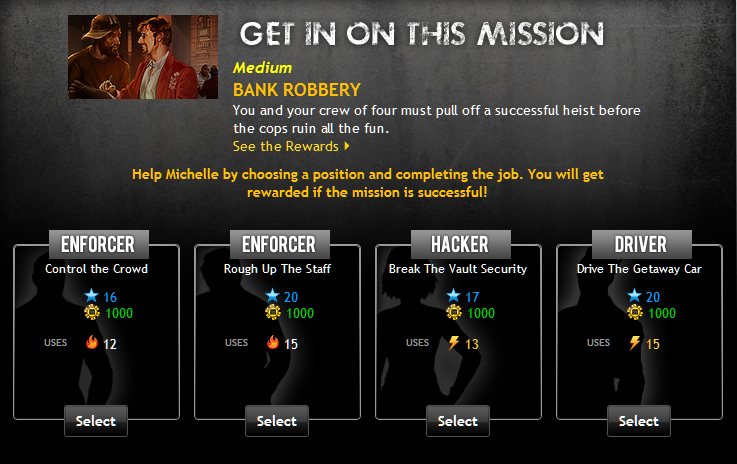 So how does Social Missions work? First you have to do regular jobs to trigger a Social Mission. This is a random occurrence. There are two roles in Social missions, which are Initiator and Helper. The Initiator is the one who starts a mission. This player can either post a feed asking for help or send requests to specific mafia members.