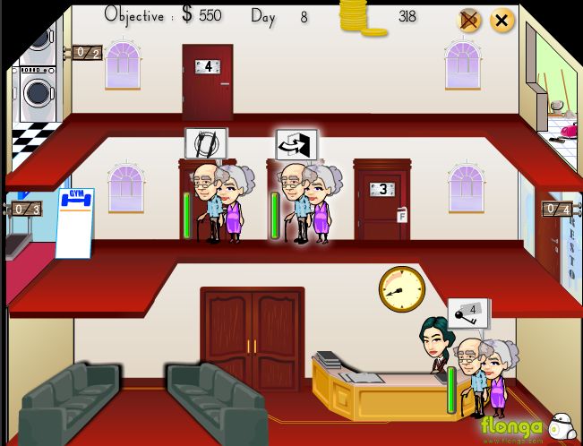 One word of advice I have for you before you go: check out the upgrade option after you finish a level and try to get the restaurant and gym as soon as possible. Now head over to Kongregate and play Hotel Management, today’s free flash game of the day! Have fun!