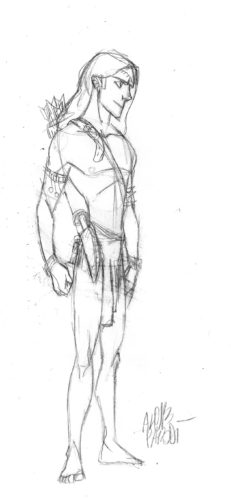 A simian sketch revealing the new Tarzan’s appearance has been released as well. Apparently, the hero will possess a hunting weapon to assist him in the woods.