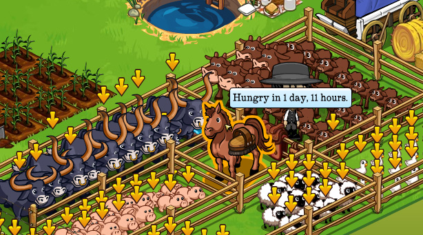 Starting this week you can now tend unready neighbor animals in Frontierville. This feature is the same as tending your neighbor’s crops when they are not yet ready to be harvested. When tending unready animals, the wait for the animals to get hungry is shortened by one hour.