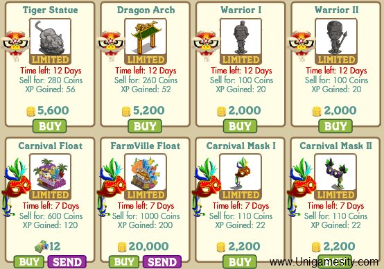 Zynga is trying to celebrate every possible holiday out there and, apart from the Valentines Day, they’re also celebrating the Mardi Gras and the Chinese Lunar New Year. And in order to make the celebration complete, they have released a ton of new decorative items to help us celebrate as well. So check out the details below, as well as images with the new decorations (click to enlarge them).