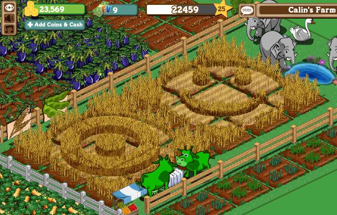 Nicely enough, both the alien cow as well as some of the alien circles can be purchased for regular coins (the BOV1NE-9 costs 2,400 coins while the circles’ price range from 4,000 to 10,000 coins). However, the cool crashed UFO costs 30 Farmville Cash, while two of the crop circles – 20. Still, it’s a lot of goodies we can add to our Farmville farm using regular money, but only for a limited time (5 days at the moment of writing). Here are the new “products”:
