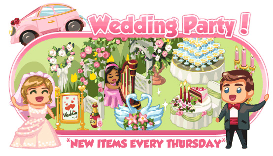 New items for the Restaurant City includes the Wedding Chair, Wedding Table, Floral Garland, Wedding Harpist, Wedding Gazebo, Wedding Candlestand Small, Podium, Wedding Flowers, Wedding Candlestand, and Wedding Trellis.