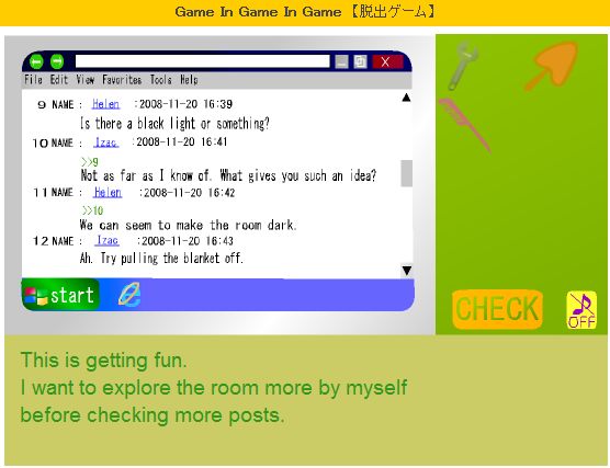 game-in-game-ingameNo, don’t worry, we’re not going to start debating whether we’re living in a dream or a game or something similar. No, we’re just going to play a really amazing and absolutely fun escape the room game, today’s daily escape title: Game in Game in Game (aka GIGIG).